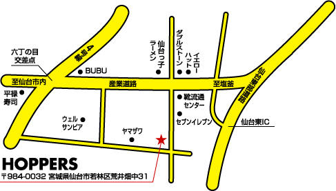 | 商 号 ホッパーズ 所在地 〒984-0032 宮城県仙台市若林区荒井畑中31 代表者 平賀和幸 電 話 022-390-6261 メールアドレス info@hoppers-u-car.com 創業 平成7年1月1日 取引銀行 七十七銀行卸町支店 取引クレジット会社 オリコ アプラス 国内信販 ジャックス サンヨウ 事業内容 自動車修理業 自動車販売業 |